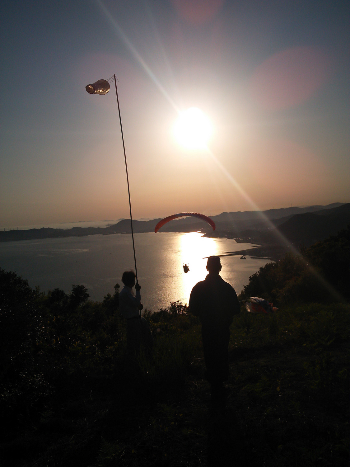Fもんさんテイクオフ!夕日、きれい〜〜(^^)二の字さま。死なないように・・・いやいや、殴られないように気をつけまーす